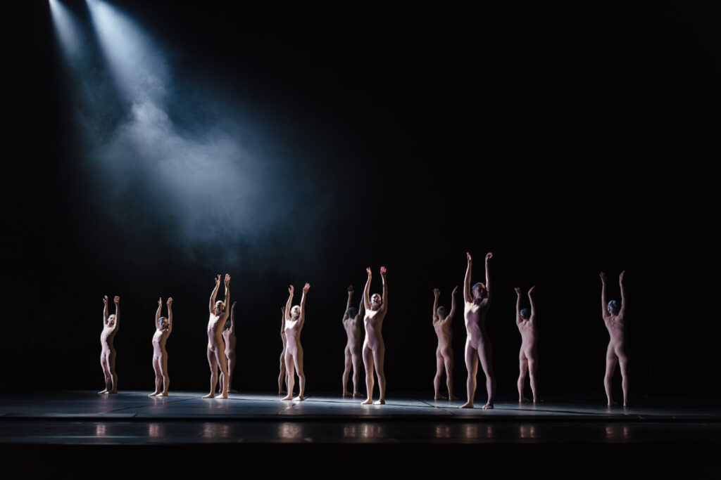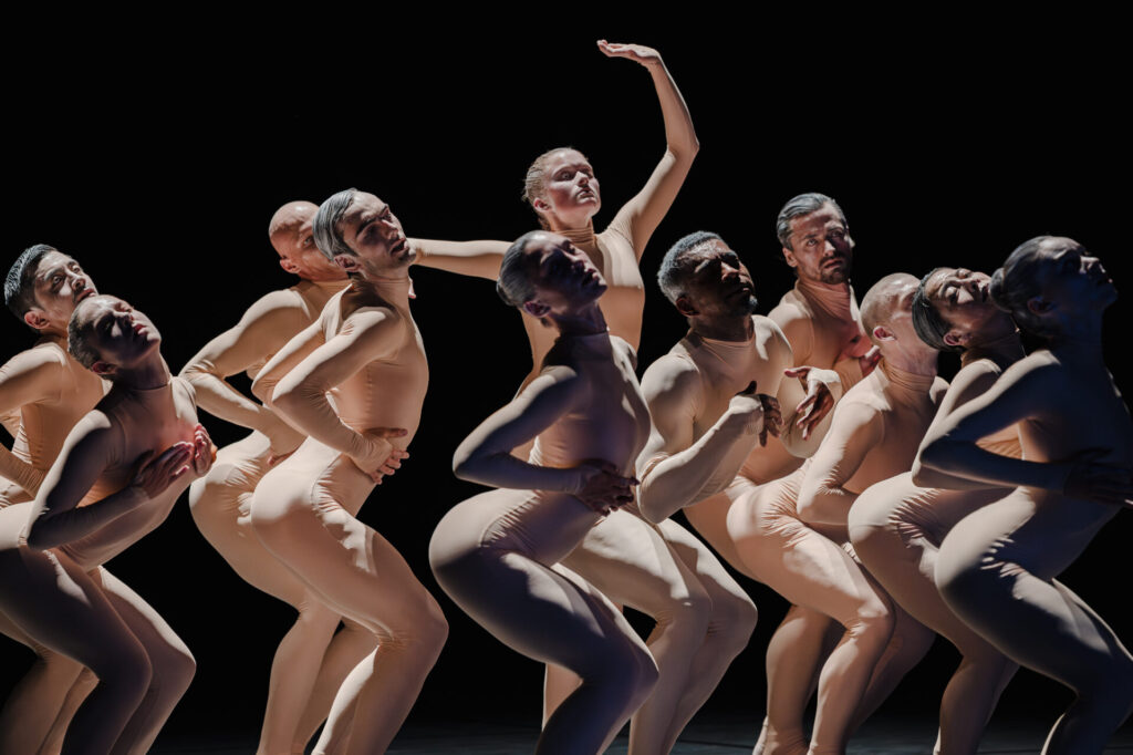 Seit fast zwei Jahrzehnten währt der künstlerische Siegeszug von Sharon Eyal und ihrer Tanzästhetik auf Europas Bühnen. »Corps de Walk« ist ein Stück aus der Zeit vor dem großen internationalen Durchbruch der israelischen Choreografin. Die 2011 uraufgeführte Auftragsarbeit der zeitgenössischen norwegischen Tanzkompanie Carte Blanche handelt von der Entmenschlichung der Masse. Die Tänzer*innen wirken wie androgyn anmutende Aliens in ihren beigen Bodysuits mit weißen Kontaktlinsen und identischen Frisuren. Präzise bewegen sich diese Aliens in geometrischen Marschformationen zwischen roboterartigen Aufmärschen und ekstatischen heidnischen Fruchtbarkeitsriten. Gemeinsam mit ihrem Partner und Technokünstler Gai Behar sowie dem DJ Ori Lichtik parodiert Eyal dabei nicht zuletzt die großen Gruppenszenen des klassischen Balletts und stellt ihnen ein aktuelles Gegenbild entgegen, das direkt von der Tanzfläche eines futuristischen Techno-Clubs zu stammen scheint. Fast 15 Jahre nach seiner Uraufführung, wird »Corps de Walk« vom Hessischen Staatsballett wiedereinstudiert. Von der Kompanie also, deren Direktor Bruno Heynderickx — seinerzeit im gleichen Amt bei Carte Blanche — Sharon Eyal einst den Stückauftrag erteilte.